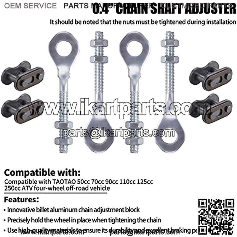 0.4″ Chain Axle Adjuster, 2Pcs 13mm Aperture Dirt Bike Chain Accessories Compatible with TAOTAO 50cc 70cc 90cc 110cc 125cc 250cc ATV Quad Dirt Bike with 4pcs 420 Chain Connector Links.
