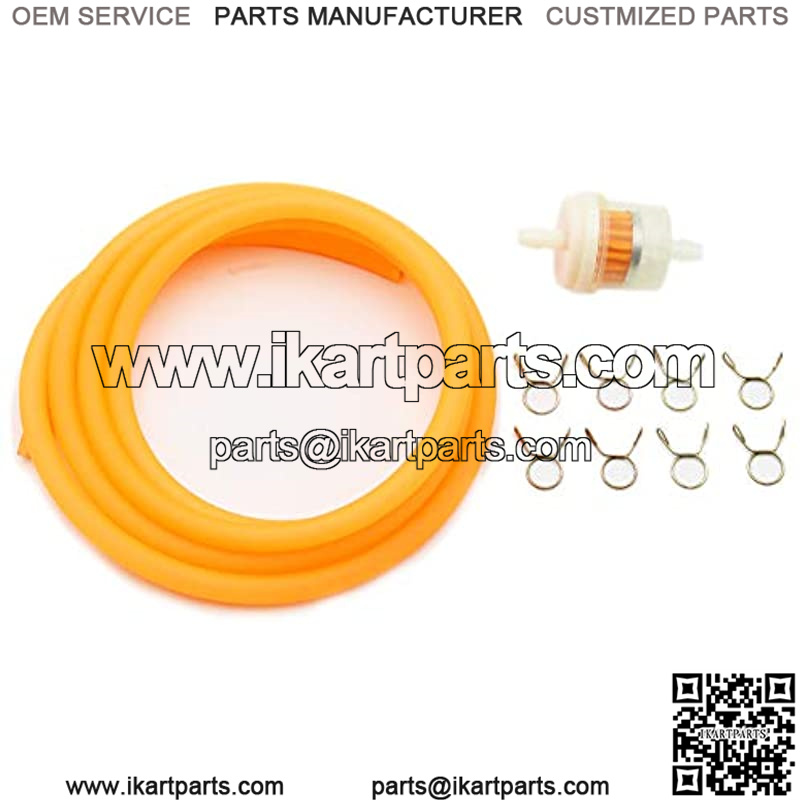 Including: 1.5m Gas Hose Line Fuel, 1pcs Fuel Filter, 8pcs Spring Clips. Six colors for your choice, Orange, Black, Red, Blue, Yellow, Green.