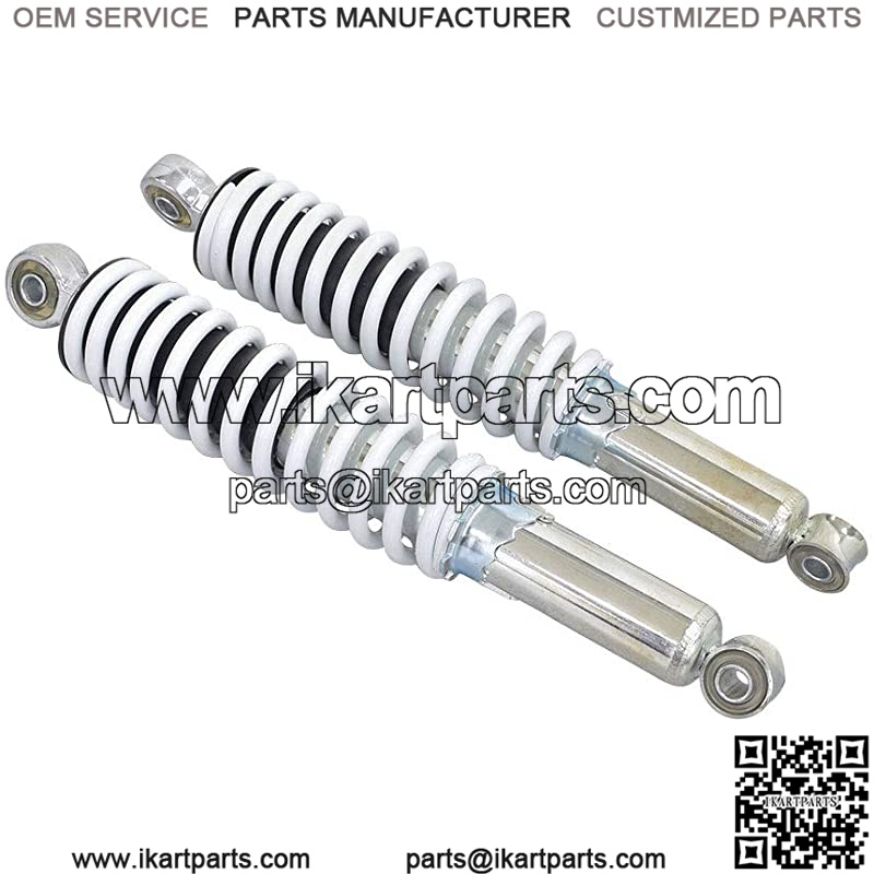 Our 12-3/4″ (325 mm) adjustable shocks with 10 mm eyes for 150cc and 250cc Hammerhead go-karts is your solution to a worn out suspension system on your Hammerhead. Now you can upgrade your kart’s old shocks with our set of two replacement 12-3/4″ adjustable shocks. Mounting a new set of shocks is more than just routine maintenance, it means a more comfortable ride. Bad shocks can damage tires or cause an abnormally jarring and rough ride. You can prevent these problems by replacing your damaged or worn out old shocks with this high-quality replacement adjustable go-kart shock. These 12-3/4″ (eye to eye) beauties are sold as a pair and are the the ‘kart doctor’s perscription for a smoother, less tooth-chattering, non-bone-rattling day at the track.