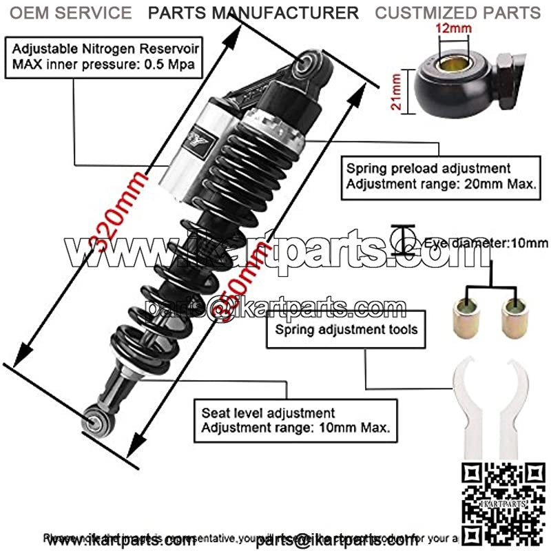 Universal fit for most 320mm Motorcycle Shock Absorber For Honda/Yamaha/Suzuki/Kawasaki;Dirt bikes, Gokart, ATV, Motorcycles and Quad. Please check your mounting measurement before purchase.