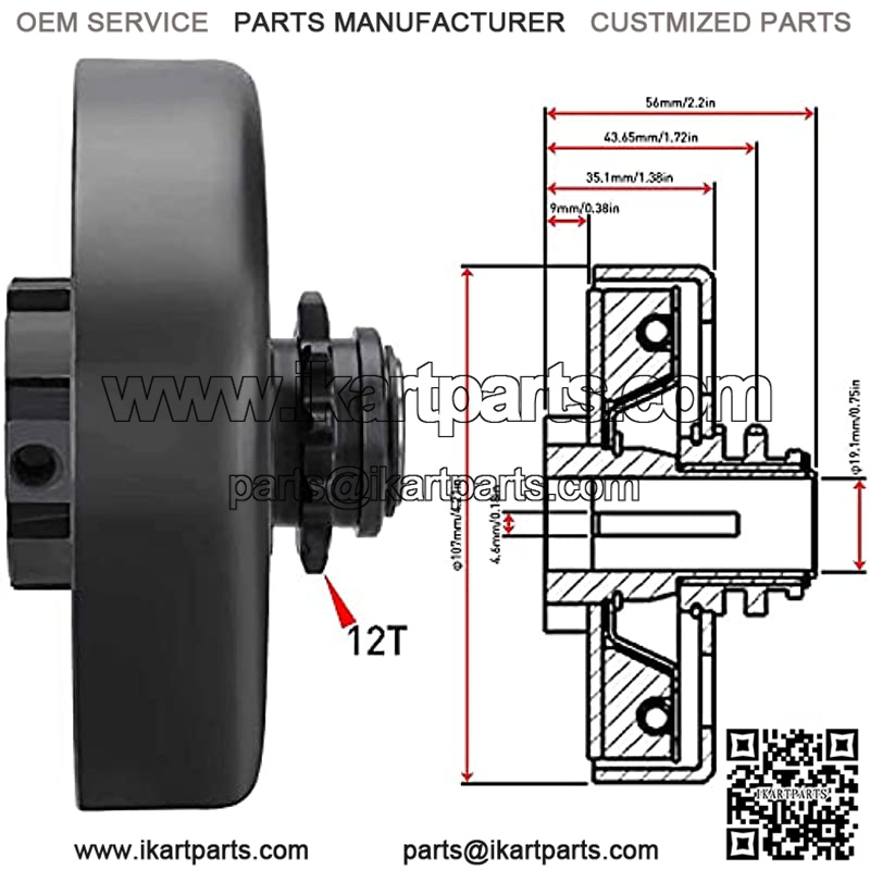 Specification: Shaft size: 3/4 Bore Chain Size: #35 Chain Tooth Count: 12 Tooth Clutch Diameter: 106.7 mm Clutch Height: 56 mm Engagement Speed: 2300??300 RPM Recommended Engine: 2HP – 6.5HP, 3/4 shaft with flat key Fitment: 2-6.5hp & cloned engines GC160, GC190, GX120, GX140, GX160, GX200 Package included: 1*Centrifugal Clutch 2*Set Screws 1*Connecting Link 1* #35 Chain Replace Numbers PBH540687. Centrifugal clutch 3/4 bore 12 tooth #35 chain screw sets for go kart mini bike fun kart 2-7 HP engines 2300??300 PRM Engines : Perfect for Go Kart, Mini bike, Fun Kart Common clutch for 3.5-7hp engines using #35 Chain Briggs & Stratton and 2 – 6.5 HP with 3/4 Shaft Tecumseh Engines 2 – 7 HP with 3/4 Shaft Other engines with 3/4 crank shaft and 3/16 key way Most 5.5 HP clones, 6.5 HP clones and 4-7HP motors in all brands Also Fits For Also compatible with 3/4 crank shaft and 3/16 key way, most 5.5 HP clones, 6.5 HP clones and 4-7HP motors in all brands Chian: The product contains a set of high-quality #35 chains.Sturdy, reliable, smooth!And in this product is attached Kindly Notes: The Centrifugal Clutch 3/4 needs to be oiled before use. Before ordering please check your crankshaft size. Don’t put oil inside the clutch holes: The holes on the drum are to let the hot air out of the clutch When oil gets in the drum portion of the clutch it will cause excessive slippage, which means undue heat will be generated.