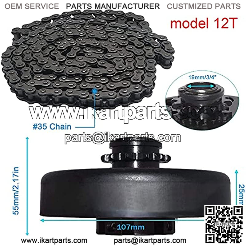 12T Centrifugal Clutch 3/4 Bore 12 Tooth with 35 Chain for Go Karts/Mini Bike/Lawnmower Fun Kart 2-7 HP Engine Replacement for GX160 GX200 GX140 GX120 GC160 GC19