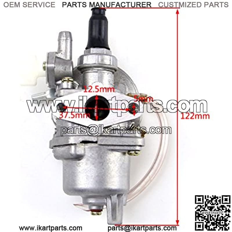 Color: SilverMaterial: AluminumIntake inside diameter: 12.5mm / 0.49″Intake Bolt Hole Spacing: 37.5mm / 1.47″Air filter Bolt Hole Spacing: 40mm / 1.57Package included: 1 x Carburetor