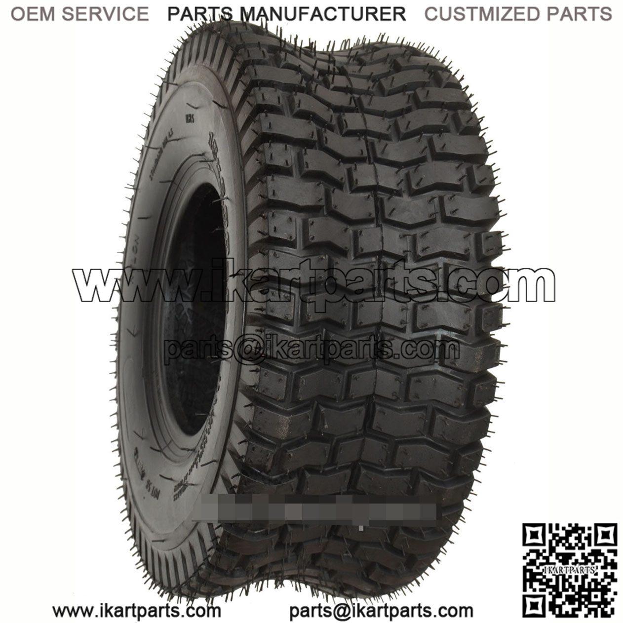 Turf tire 15″ tall, 6″ wide and fits on a 6″ rim. If tube needed use kd13506t.