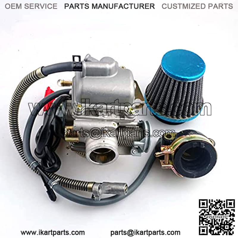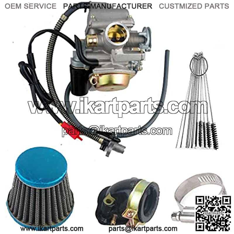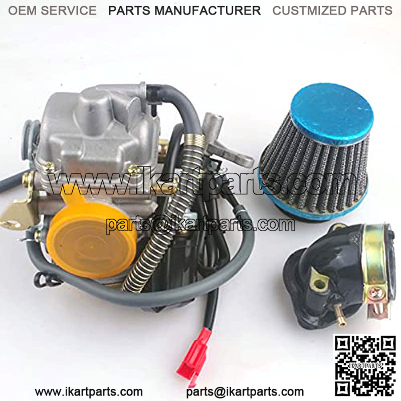 GY6 150cc Scooter Carburetor Includes Electric Choke Inner Diameter (intake side): 24mm,Outer Diameter (intake side): 32mm, Inner Diameter (air filter side): 38mm, Outer Diameter (air filter side): 42mm Package includes all parts shown in the pictures.