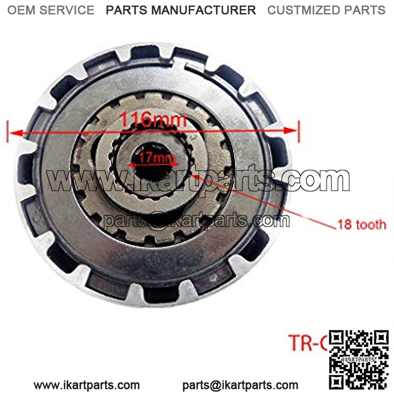 Brand new clutch assembly with accessories Fit most 110cc, 125cc, 135cc ATVs, dirt bikes, and go karts with semi automatic with reverse engine 18 Teeth Drive Gear Includes everything you need to replace the old clutch. Please check pictures and specifications for compatibility, some models use 17 teeth clutch.