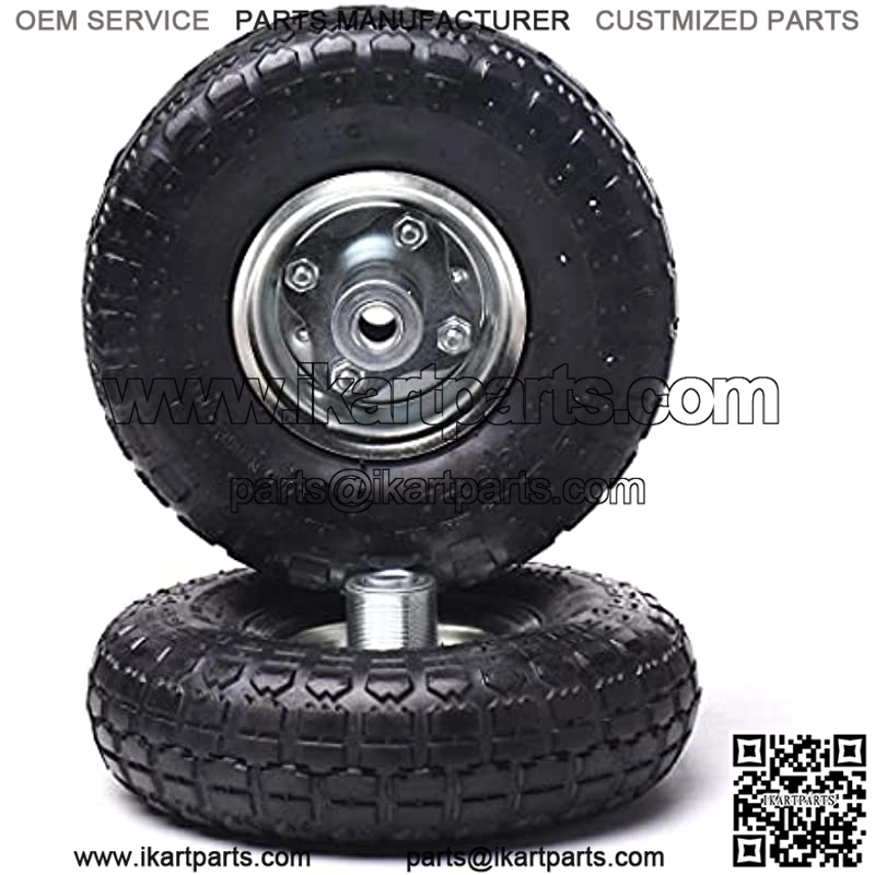 UNIVERSAL REPLACEMENT TIRE AND WHEEL – These 10-inch rubber tires are perfect for a wide variety of applications. It has 5/8-inch axle bore hole that fits numerous dollies, walk-behind lawn mowers, hand trucks, wheelbarrows, yard trailers, dollies, trolleys, wagons, snow blowers, pressure washers, air compressors, generators, go-karts, wood chippers and more! HEAVY-DUTY TIRE AND WHEEL MADE FROM HIGH-QUALITY MATERIALS – The tire and inner tube are both made from 100% natural rubbers while the rim is made from premium-quality steel. With rubber that is 4X times thicker than other brands, these wheels provide maximum shock absorption for a smooth and comfortable ride. EXPLOSION PROOF INNER TUBES – Safety first is our motto. We ensure that all our products pass safety standards. These tires’ inner tubes have an explosion-proof design that creates an airtight seal in the event of a tire puncture. The seal prevents further damage to the tires and ensures that the rider/equipment oper