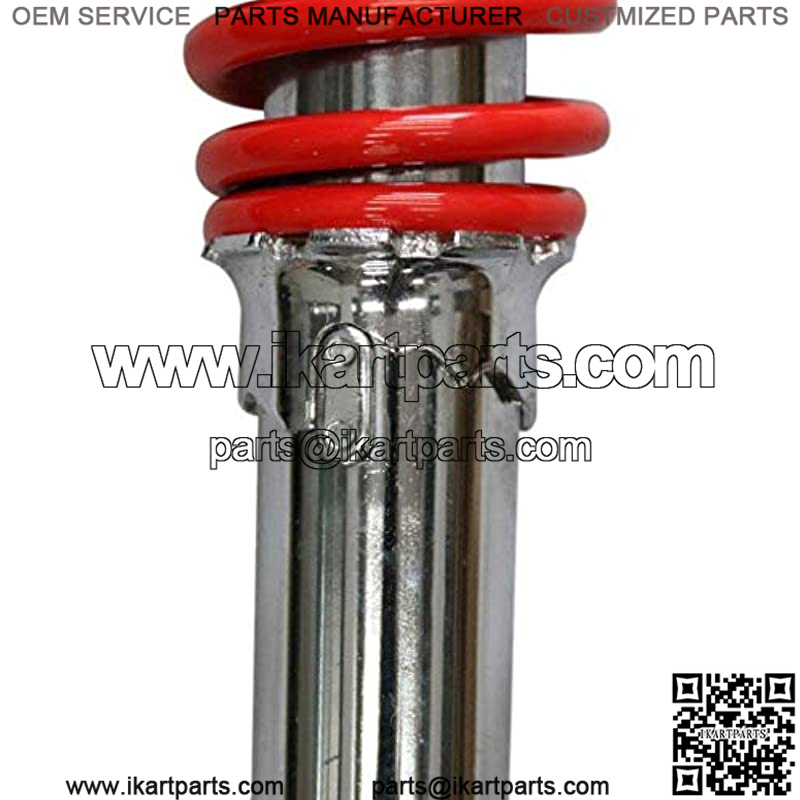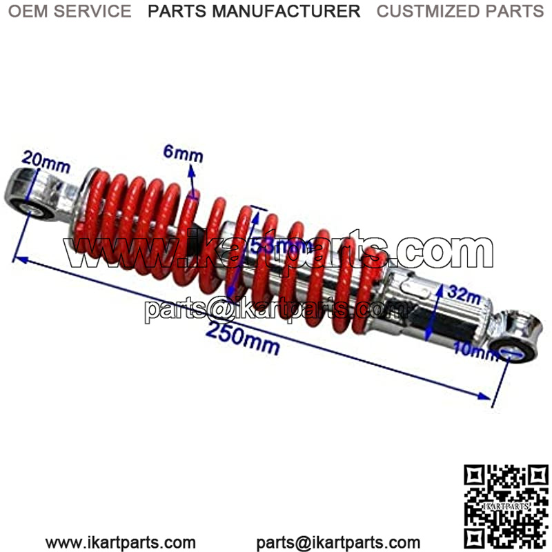 Specification:Travel length: 50mm (1.97″)Eye center to center: 250mm (9.8inch)Mounting hole diameter: 10mmMax loaded of each shock: 400lbs