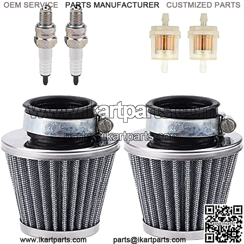 Package comes with: 2pcs air filter + 2pcs fuel filter + 2pcs spark plug