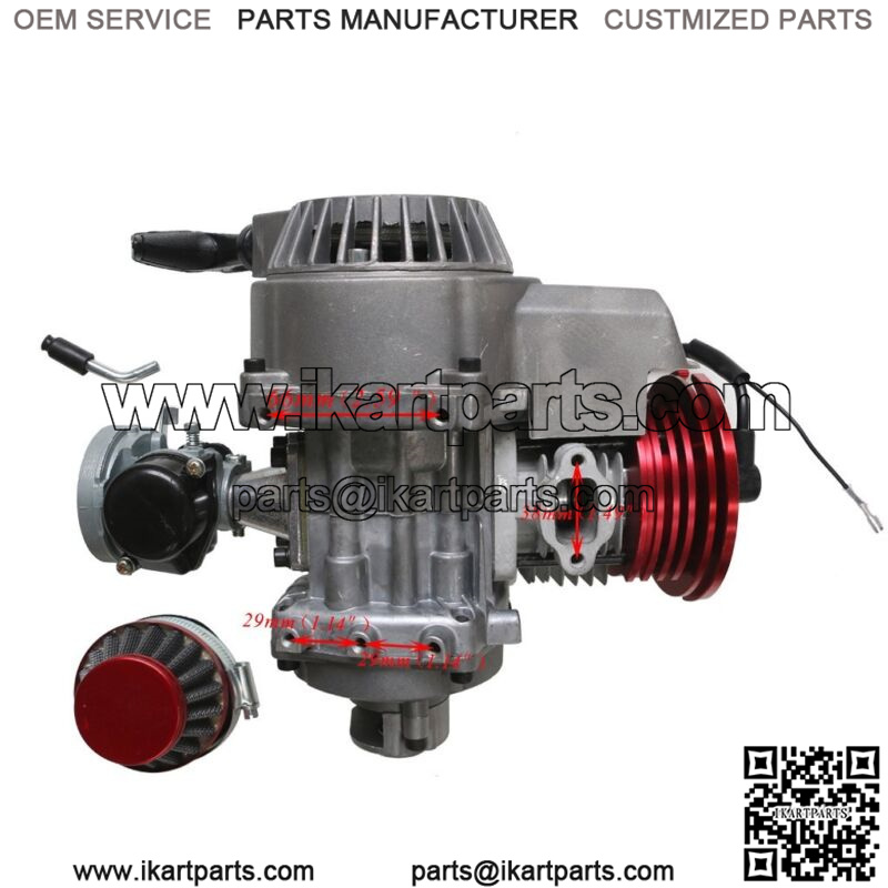 Engine suitable for: 47cc/49cc Pocket bike, mini dirt bike, mini ATV, other scooters with similar or identical engine mounts.
