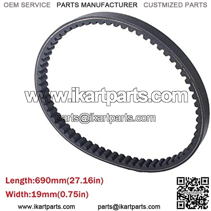 go-kart drive belt used on most Compatible with Manco, American Sportworks and Ken-bar karts with 5hp-7hp engines drive belt used on the Compatible with Comet TAV2 bolt on torque-a-verter kit This is a 30 series asymmetrical flat on one side and angled on the other.The part/product is not sponsored or endorsed by,or affiliated with the brands it fit,including Manco,American Sportworks,Ken-bar karts,Comet package includes 1 pc drive belt,length 27 1/32″ width 3/4″ center to center spacing for the driver and driven pulley needs to be between 6 5/8″ and 6 11/16″.Non original aftermarket part