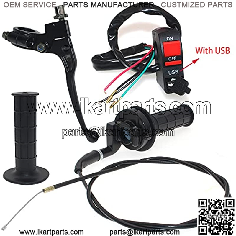 This handlebar replacement set includes??Handle Grip + Cable + Throttle Clamp + USB flameout switch+Left Brake Lever