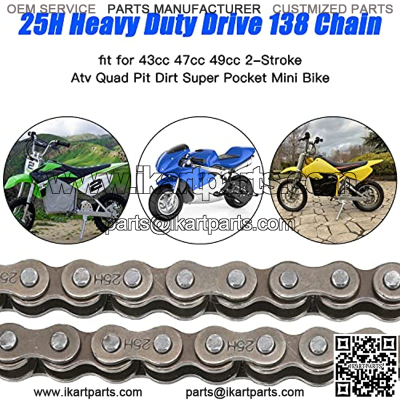 25H Drive Chain 138 Links for 33cc 47cc 49cc 2-Stroke Razor SX350 SX500 MX500 MX650 Cobra Cagllari CAG Goped Mini Chopper Dirt Super Pocket Bike ATV Quad Electric Scooter Kid Mini Moto Parts