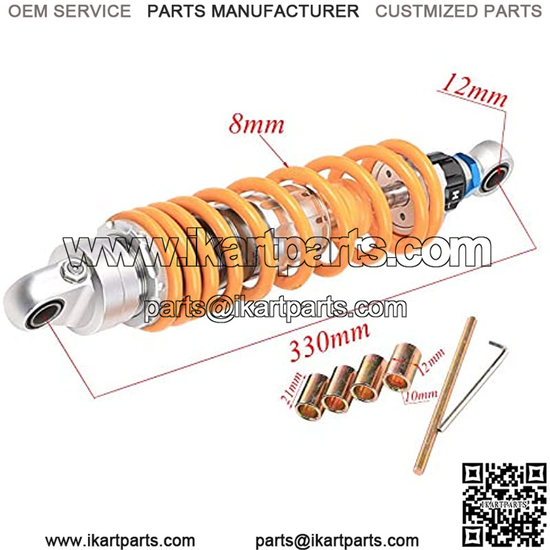 Shock size: 330mm (13″) eye to eye length Eye Diameter: 12mm Spring thickness: About 8mm Package include: 2 x shocks