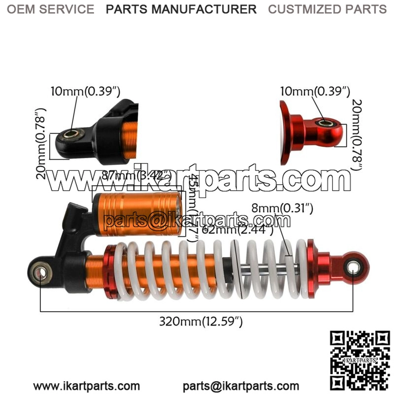 2x 320mm 12.5″ Front Shock Absorber for ATV QUAD Go Kart Dirt Pit Bike 800lbs