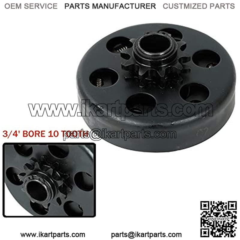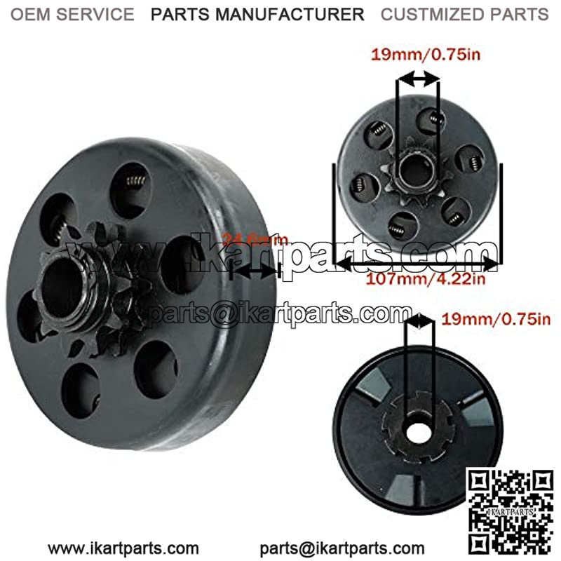Specification: Clutch Bore: 3/4″Sprocket: #40/41/420 ChianClutch Dia: 107mmClutch Height: 55mmHorse Power: Up to 6.5 HPKeyway: 3/16 inchOutside Diameter: 4.22 inch
