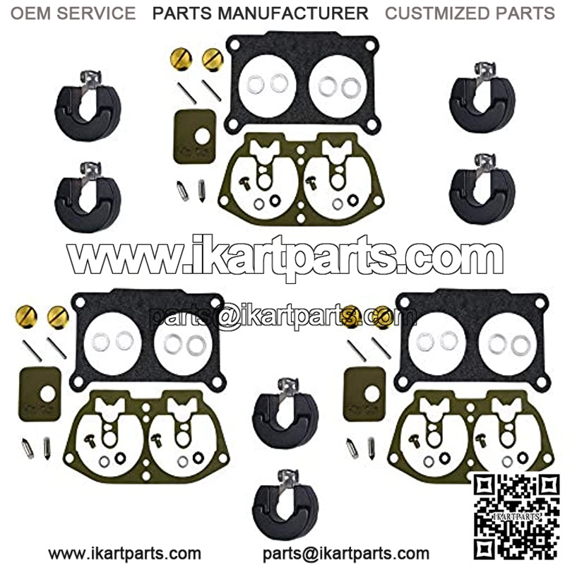 This kit includes the parts pictured to rebuild 3 (THREE) carburetors.
