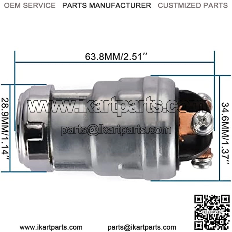 Connection:three wire,two keys included.Go kart ignition key start switch.Replacement for 50cc 90cc 110cc 125cc 150cc 250cc ATV,motorcycles dune buggy,mowers,go karts.Three contact terminals to ensure Ignition efficiently,these universal ignition switch are made by high quality aluminum,dorable and long lifetime.Before buying,please check the size and model.Avoid buying the wrong part.Warranty:We are always available to help our customers.If you are not satisfied with the order,please leave us a message.Wish you have a happy shopping experience,we are committed to providing the best service.Product Description pls confirm The size of the product meets your requirements before you purchaseNote:please allow 0.5-1 inch difference due to manual measurement.1inch=2.54cmFeature:Go kart ignition key start switch.Connection:three wire.Two keys included.Replacement for50cc 90cc 110cc 125cc 150cc 250cc ATV,motorcycles,dune buggy,mowers,go karts.Package Included:Switch Key x 1pcKeychain x 1pcAbo