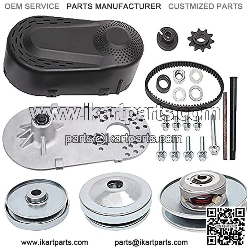 Specifications: Material: Iron & Aluminum Drive clutch bore: 3/4″(19mm) Driven unit: Diameter 6″ (5/8″ driven pulley) Sprocket teeth: 10 tooth #40/41chain Engagement range: 2350??200 RPM Recommended engine: 2HP-8HP Belt: Asymmetrical type Fits: All engines with a 3/4 inch straight crankshaft You will Get: 1 x Drive Belt 1 x Plastic Cover 1 x 3/4″ Driver Pulley 1 x 5/8″ Driven Pulley (6″ Diameter) 1 x Aluminum Mounting Plate 1 x 10 Tooth Sprocket for #40 #41 Chain 1 x Mounting Hardware Kit