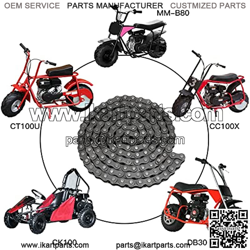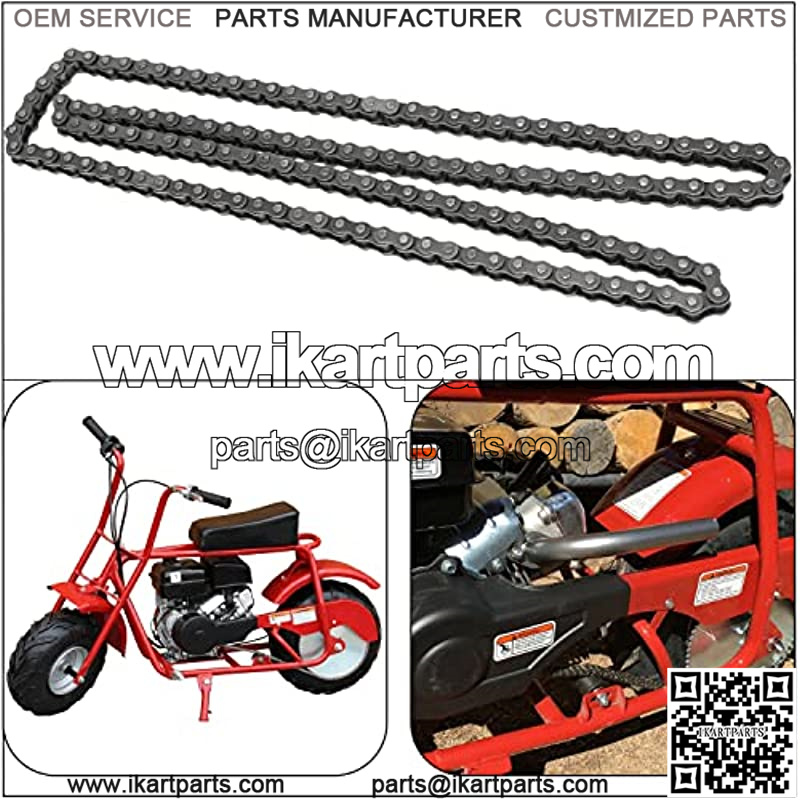 Most go kart chains and mini bike chains have the chain size stamped directly on the chain links. T8F,25H, #35, 40, 41,415H, 420,428 and 50 chain are used on American Pocket Bikes,ATV,Pit Dirt Bikes Go Karts and Mini Bikes. An 11 or 12 tooth clutch sprocket usually indicates the use of 35 chain. 10 tooth clutch sprockets usually indicate the use of #40, 41 or 420 chain.