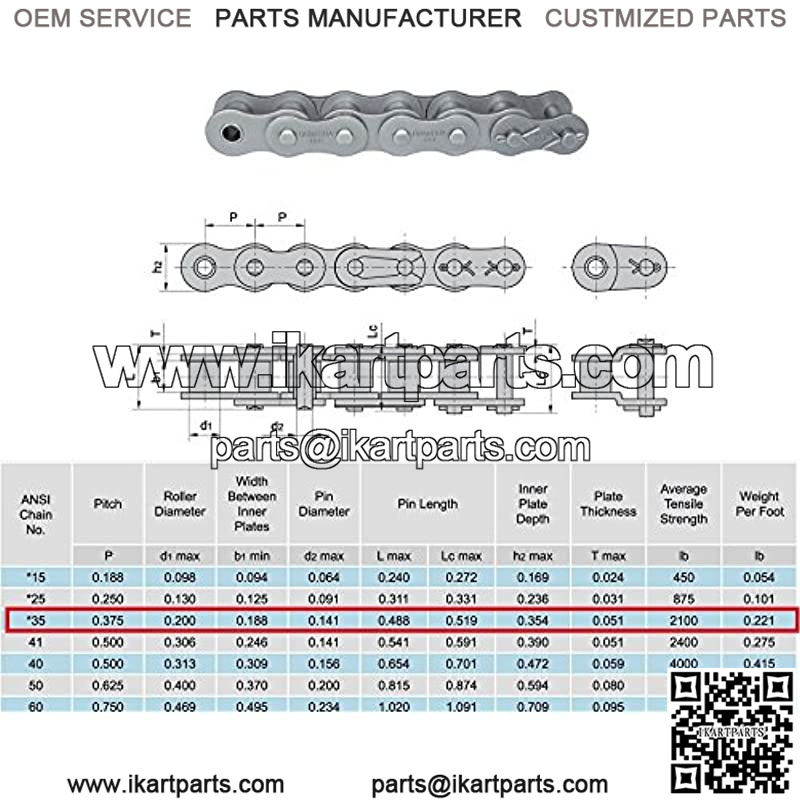 35 Roller Chain 5 Feet with Free 1 Connecting Link for Go Karts, Mini Bikes, Scooters, ATV, MTV, Dirt Bike and Other Industrial Machinery