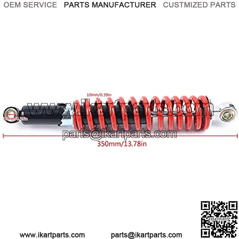 Specification:Color:RedSpring rated :500lbsTravel length: 65mmInner hole diameter: 10mmSpring thickness: 10mmShock Absorber length??350mmPlacement on Vehicle:FrontFitment Type: Direct Replacement