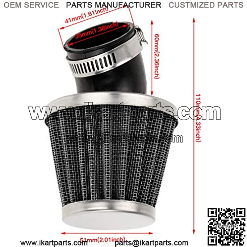 35mm Go Kart Bent Rubber Tube Air Filter Cleaner for NST SunL Kazuma Baja 50cc 70cc Coolster 110cc 125cc Atv Honda Xr50 Crf50 CRF80F XR50R Dirt Pit Bike Scooter