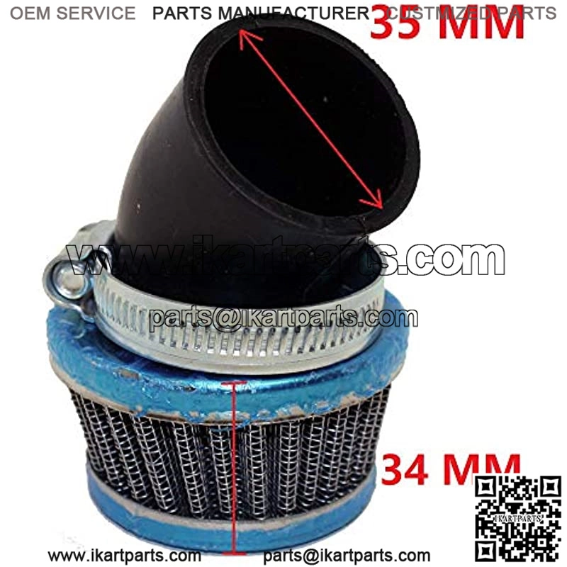 This new 35mm ID Curved Air Filter fits many Chinese 4-stroke ATVs, dirt bikes, go karts, mopeds, and scooters. It fits many 50cc, 70cc, 90cc, 100cc, 110cc and 125cc 4 Stroke engines.