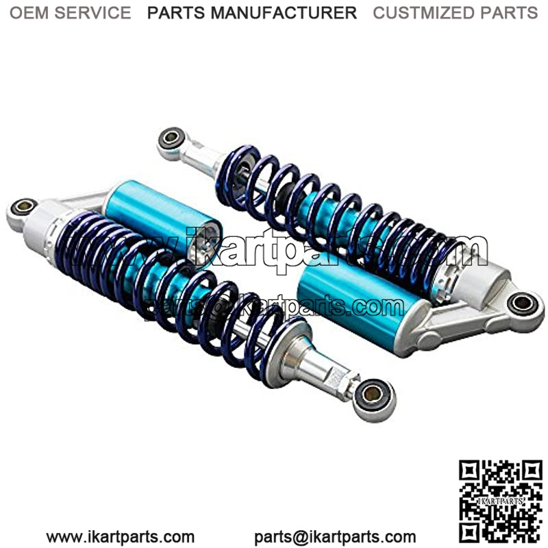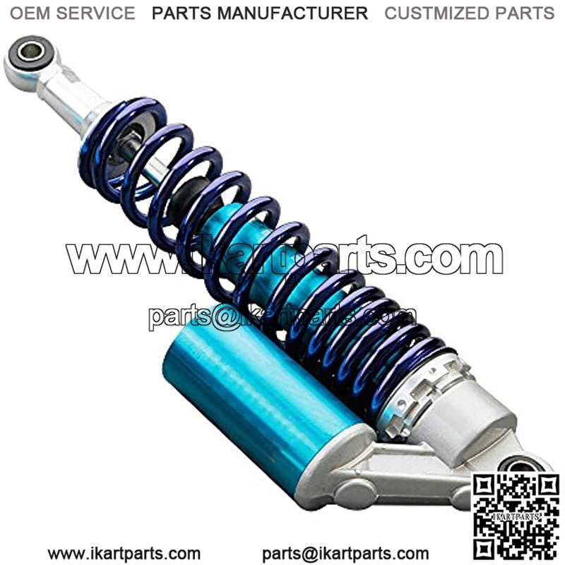 A Pair of Round Hole 375mm Aluminum and solid steel motorcycle shock absorbersUniversal for Honda/Yamaha/Suzuki/Kawasaki, the diameter of the round hole at the bottom is 12mm, and the length between holes to hole is 375mm(14.75″). Please check the size details and make sure it will fit your bike before purchase.Absorb shock promptly in the clumpiest road to improve security and make you feel more comfortableInstallation type: Eye to Eye. Best choice for replacement, style upgrading or bike modification.Motorcycle shock absorber universal fit for most vehicles. Package included: One Pair Shock Absorber, 2 x Wrench, 2 x BushingColor:375mm BlueThis pair of 375mm Motorcycle Shock Absorber is Universal for most 150cc~750cc street bikes, Karting(Go kart), Scooters and Moped Quad (ATV) with shocks of 375mm Length of Eye to Eye Core. Great choice for replacement, style upgrading and bike modification. (Please kindly check the dimension below before placing order.) Item Specific: Condition: Bra