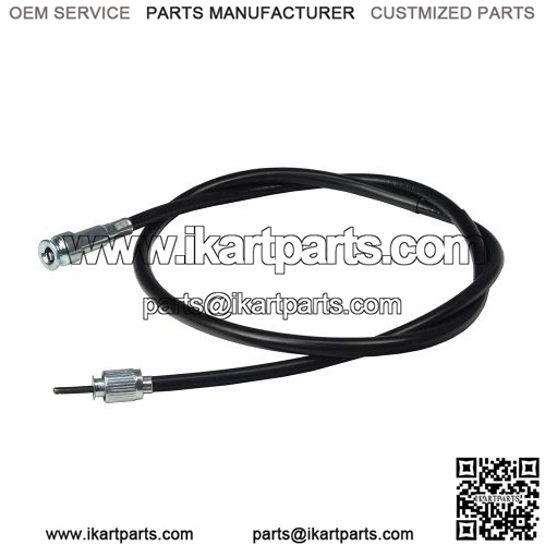 This scooter go-kart speedometer cable measures 40″ in overall length, with a cable sleeve length is 38-3/8″. Diameter of the snap-in non-threaded end is 14 mm.