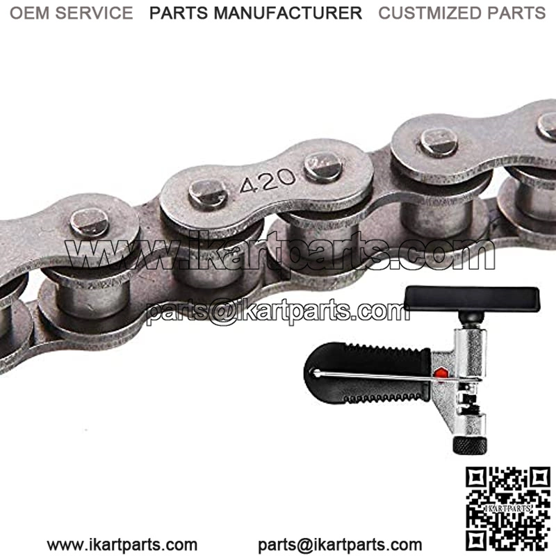 Specification: 420 motorcycle chain with 132 knots + Chain breaker set alloy steel Features: Size: 420 Links:132 Includes master link Material: Alloy steel Made of alloy steel, heavy duty and long durability. Links can be removed to fit virtually any application, like 50cc 70cc 90cc 110cc 125cc ATVs and dirt bikes, Go Kart, Mini Bike, Scooter, Pit Bike, Quad, etc. Packing included: 1 * Roller chain 1 * Chain