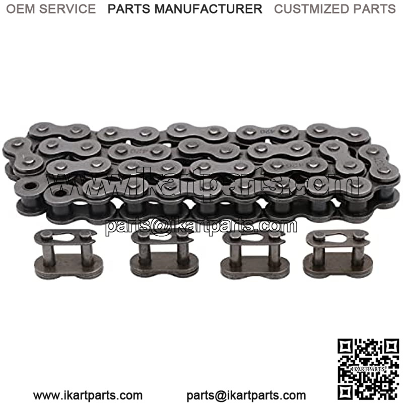 420 42Link Has Heavy Duty Capacity, and High Strength for a Long Time Use. It is Easy to Install and Operate, Andaffordable Replacement. Equipped with 4 x Master Link and 1 x Chain Breaker, You Can Adjust the Chain Length According to Your Needs.