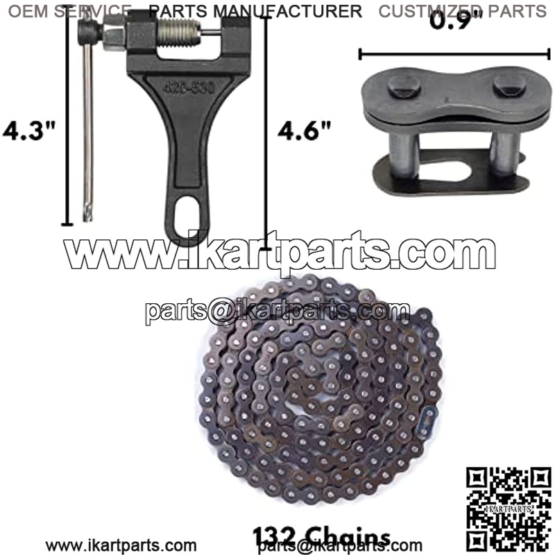 420 Motorcycle Chain – 420 Standard Drive Chain for 110cc 125cc Go kart Mini Bike Dirt Pit Bicycle ATVs Quad Scooter, 59″ Roller Sprocket Total 132 Links with 2 Master Links + Chain Breaker