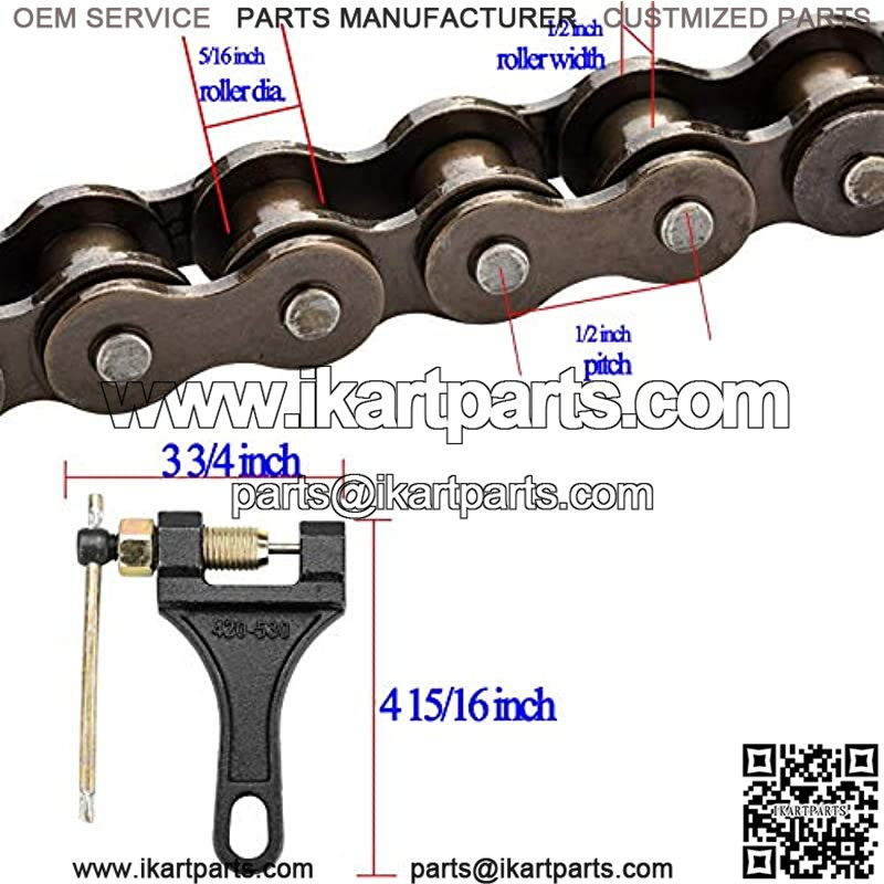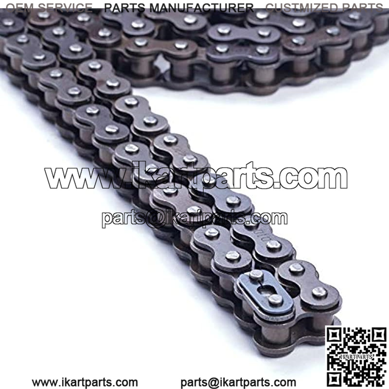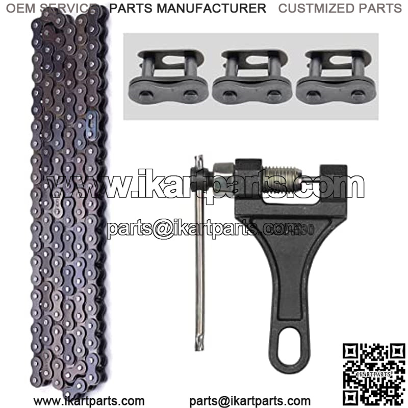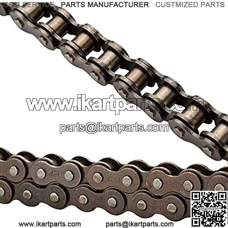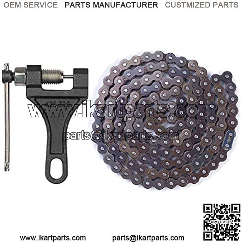 Made of alloy steel, this 420 roller chain is in premium quality, heavy duty, strong and durable Fit for 110cc 125cc go cart, dirt bike, pit bike, mini bike, scooter, ATV quad etc Chain total length 132 links, long enough for your use Come with a master link and chain breaker, you can cut the chain to required length and reconnect Package including 1pcs roller chain with a master link and 1pcs chain breaker
