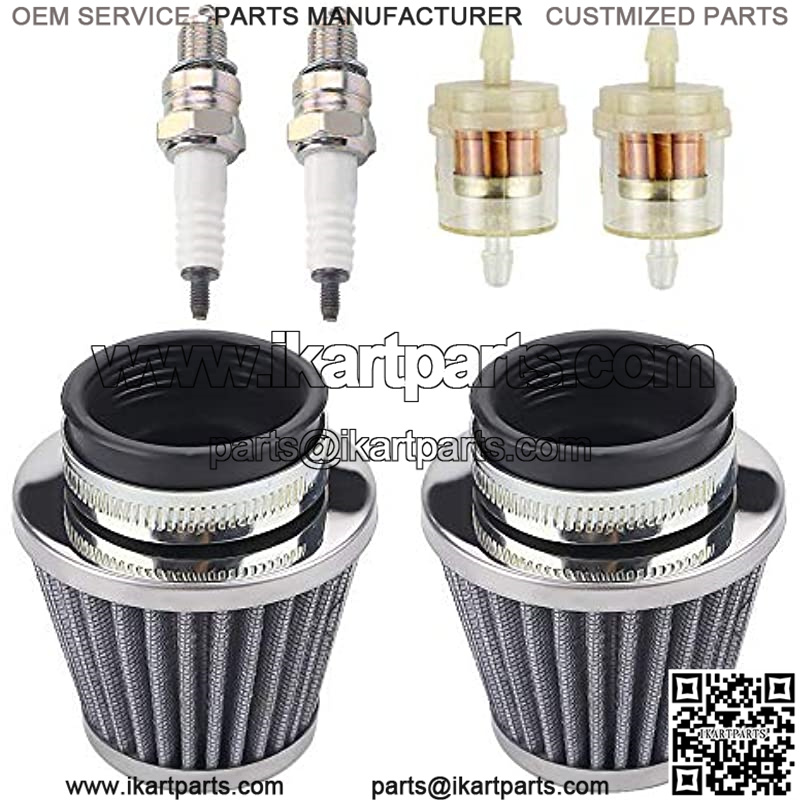 Package include: 2x air filter + 2x spark plug + 2x fuel filter