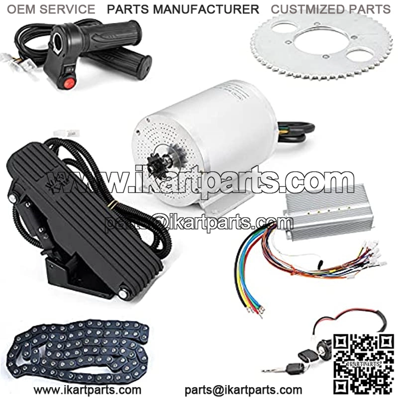 3. DC motor kit reverse design, BLDC kart motor can run clockwise or counterclockwise through motor reverse line or handlebar reverse switch, and has a 3-speed function, low speed 50%, medium speed 70-80%, The high-speed speed is 100% efficient, but do not let the motor run in reverse for a long time, which is not safe for the motor life.