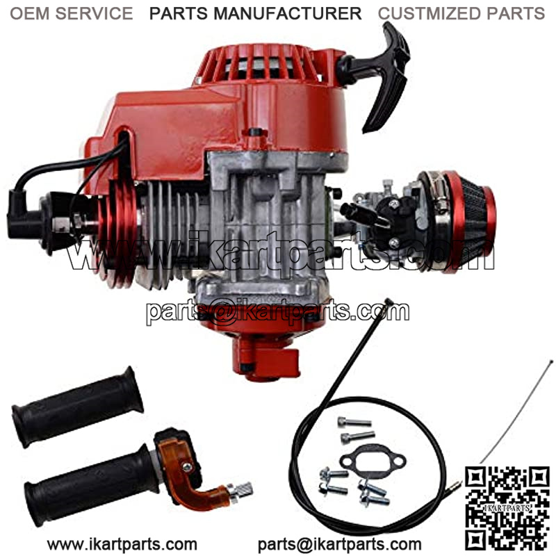 44mm Big Bore Cylinder with Recoil Starter with Carburetor and Air Filter Modified Engine Kit Replacement for 2 Stroke 43cc 47cc 49cc 52cc Mini Pocket Bike Gas Moped Scooter Red