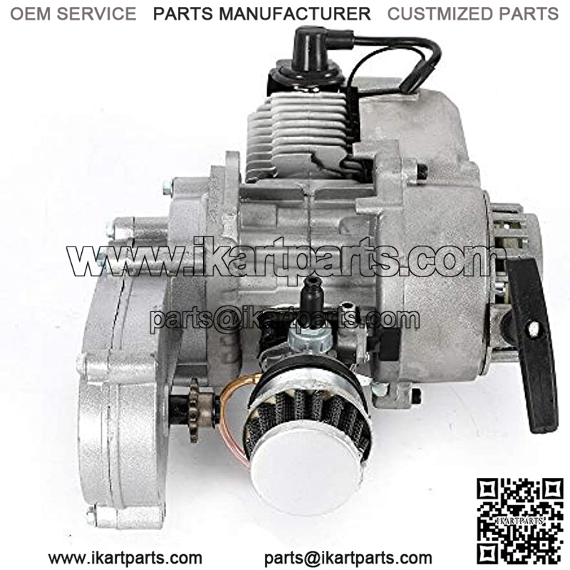 1.49cc mini motor air cooled racing engine capable of achieving 40mph dependant on user weight and terrain. 2.Engine is COMPELTE WITH High performance cylinder head, plug, powder coated metal pull start, air filter and 14mm carburettor,Balanced crank, balanced flywheel, ported piston windows, uprated CVT transmission unit. 3.For 49CC 2 Stroke Pocket Bike, Mini Dirt Bike, ATV or Scooter. Engine suitable for: For 49CC 2 Stroke Pocket Bike, Mini Dirt Bike, ATV or Scooter.