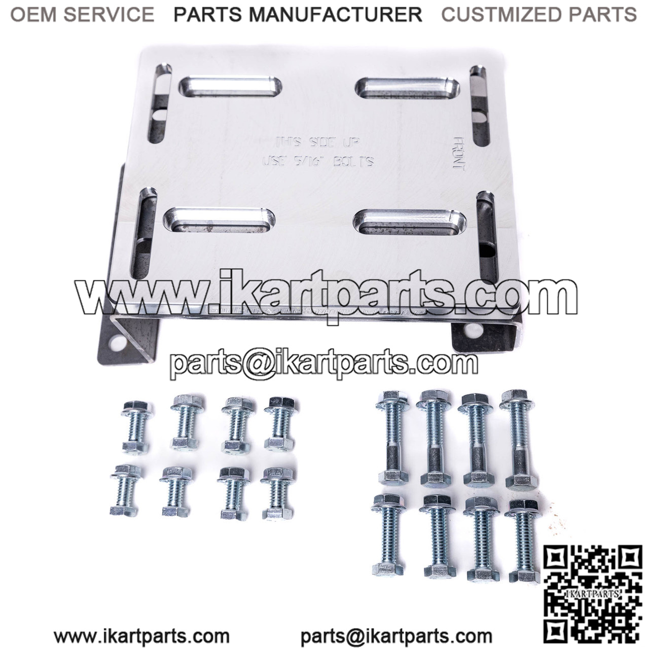 The 80/105 Adjustable Motor Mount is needed when putting 6.5HP engines in these 80 and 105 mini-bike frames. Will need our Stage 1 Deluxe Kit as well to run this kit (the stock air box and muffler will not clearance).
