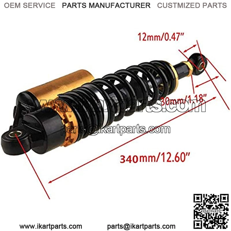 Fit bikes with shock absorbers of 340mm eye to eye distance,The diameter of the round hole at the bottom is 12mm