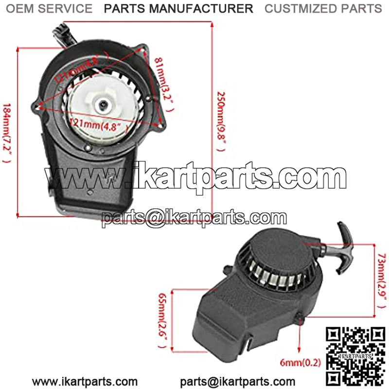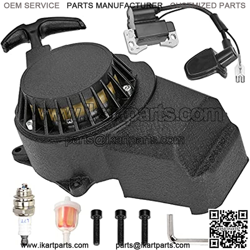 Alloy Easy Pull Recoil Start Starter Spark Plug Ignition Coil for 2 Stroke Engine 47cc 49cc Coolster Chinese ATV Quad 4 Wheeler Go kart Pit Dirt Mini Pocket Chopper Bike Motor Gas Scooter Black