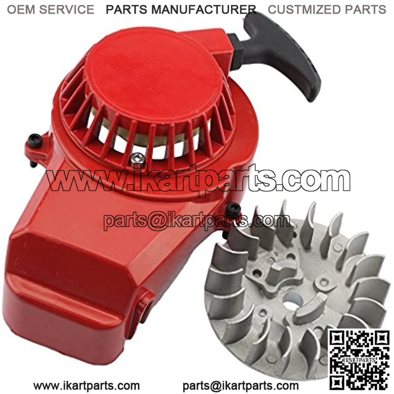 This alloy pull start recoil starter with 18-fin flywheel fits for 47cc 49cc Pocket Dirt Bike Mini ATV