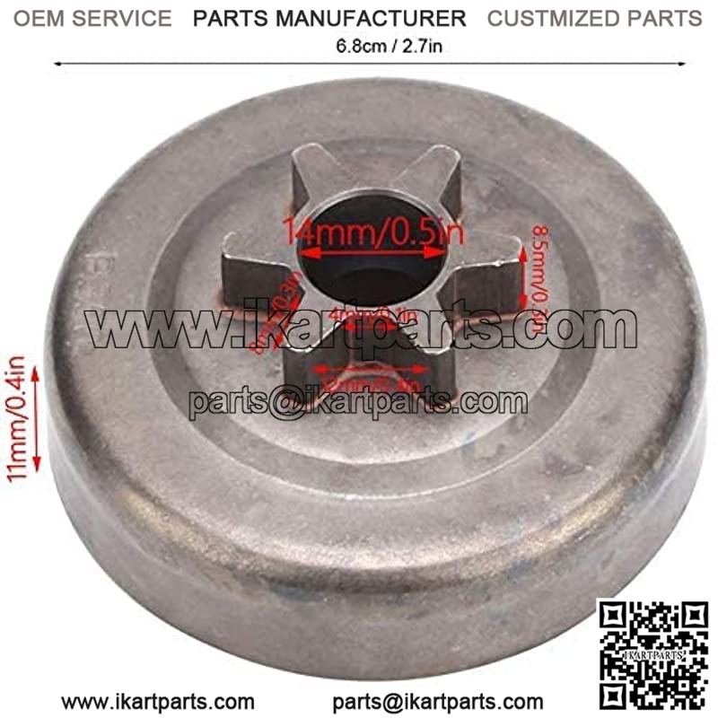 Professional manufacturing, in line with strict production standards, can be perfect for your chain saw tools. The installation and replacement method is simple, which can directly replace the old or damaged parts. Made of new metal material, wear-resistant, corrosion-resistant, not easy to damage, long service life. Perfect chain saw clutch drum, exquisite workmanship, reliable quality, high safety. This product is perfect for Poulan PP4216 PP4218 P3314 P3416 chain saw.