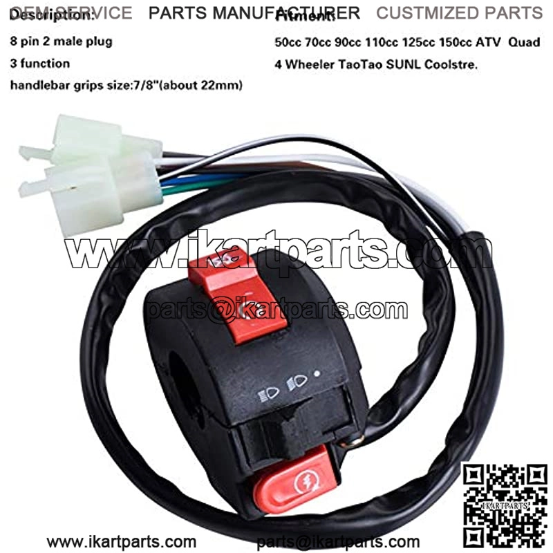 100% brand new, high performance accessories. 8 pin 2 male plug,3 function,handlebar grips size:7/8″(about 22mm).