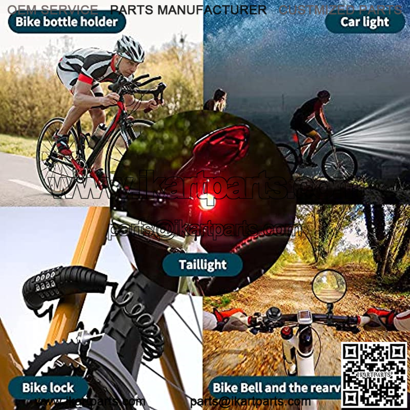 Bicycle Accessories, USB Rechargeable Bicycle lamp Set, Bicycle lamp, Bicycle Lock, Bicycle Water Cup seat, Bicycle Mobile Phone seat, Bicycle Mirror, Bicycle Bell