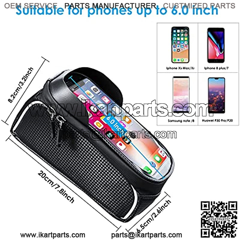 Bike Phone Front Frame Bag, Waterproof Bike Phone Mount Bag, Bicycle Bag Bike Accessories for Adult Bikes, Cycling Pouch Compatible with iPhone 11 XS Max XR Fit 6.5??