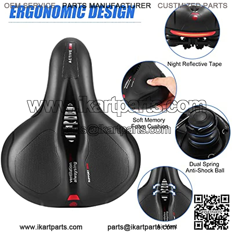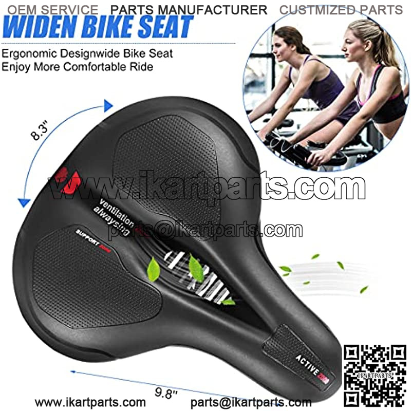 Bike Seat, Comfortable Bicycle Saddle for Women Men, Widen Bike Seat Cushion with Dual Shock Absorbing, Memory Foam, Reflective Tape, Universal Fit for Mountain/Road/City/Children Bike