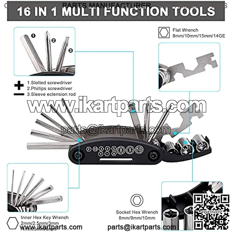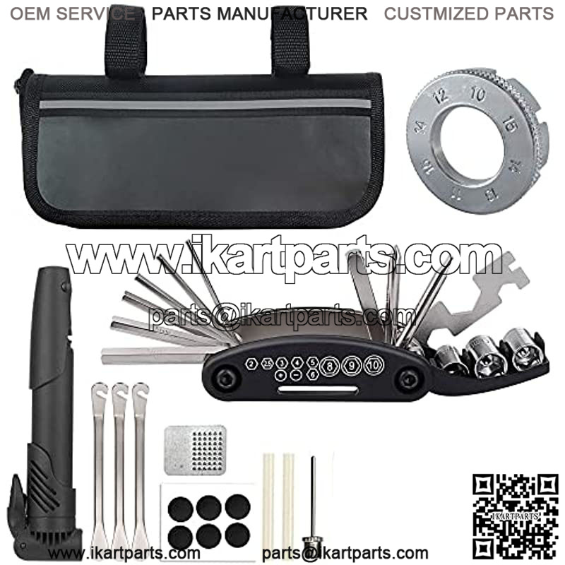Bike Tire Repair Kit Bag, Bicycle Tool Bag Emergency Portable Mini Pump Spoke Wrench Metal Tire Levers, 16 in 1 Multi Function Tools Cycling Accessories for Outdoor Camping Travel Home Road