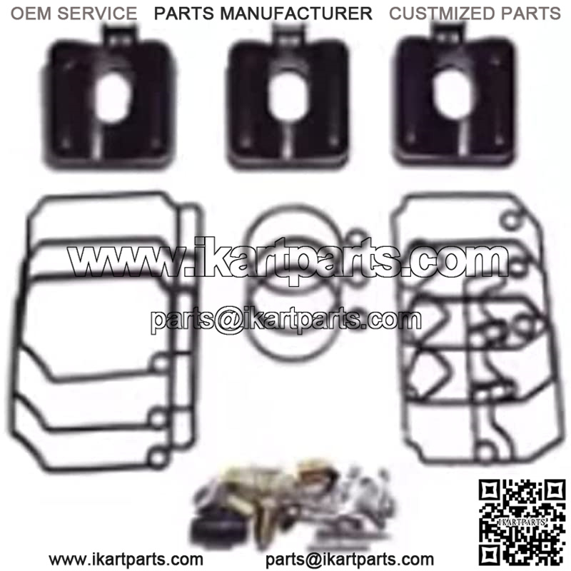 (3) Gaskets, (3) Caps, (3) Needle Valve Assemblies, (3) Clips, (3) Float Pins, (3) Floats, (3) Float Arm Pins, (3) Float Chamber Gaskets, (3) Screws with Washers, (3) O-Rings, (3) O-Rings (3) Pilot Screws; comes as shown in the first image
