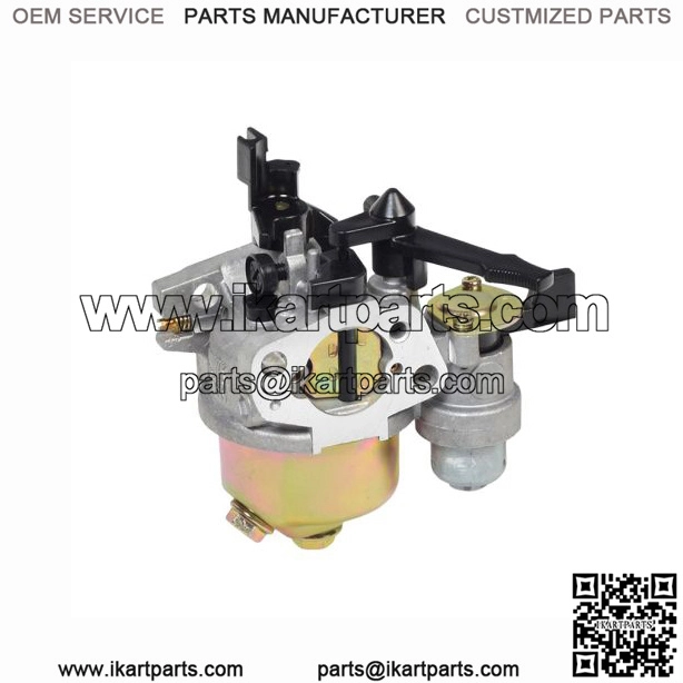 This carburetor is compatible with 196cc, 200cc, and 212cc mini bike, pit bike, and go-kart engines, and is equipped with a manual choke, and fuel shut off valve